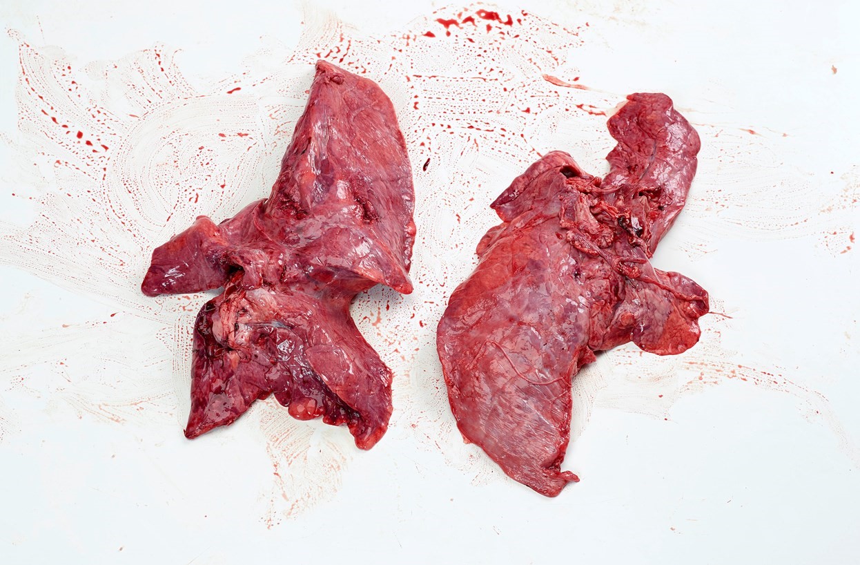 Raw cooled pig livers. Pork milky spot liver. Not approved for human consumption.
